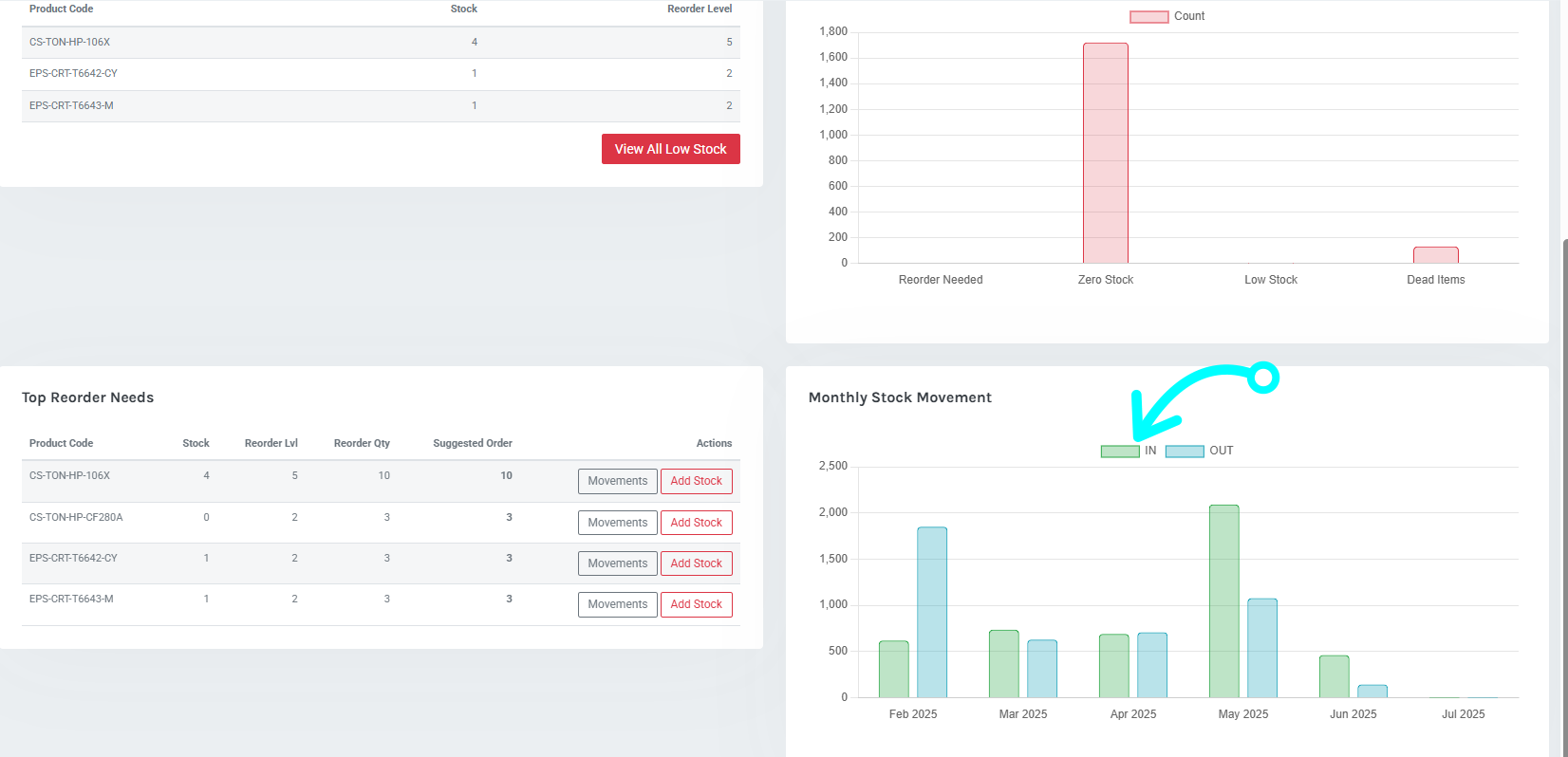 Step 2: Under 'Stock', click on 'Stock Dashboard'